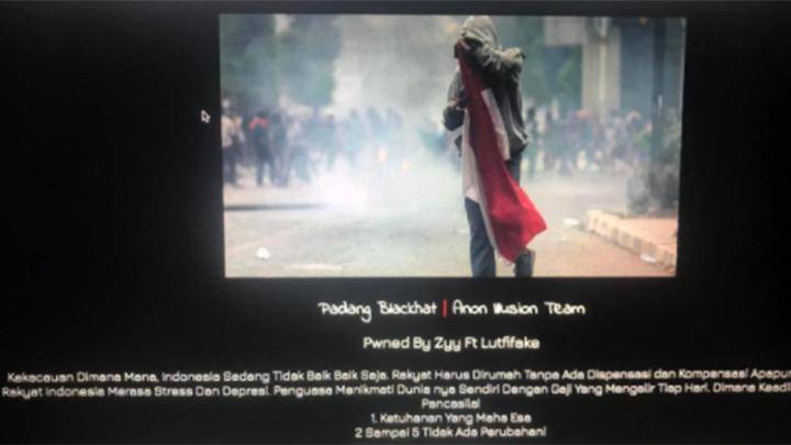 Ketika situs diakses, penggunjung seharusnya ditampilkan berbagai informasi umum ternyata diubah dengan foto seseorang yang sedang membawa sebuah bendera merah putih dengan tulisan “Padang Blackhat” dan “Anon Illusion Team.”