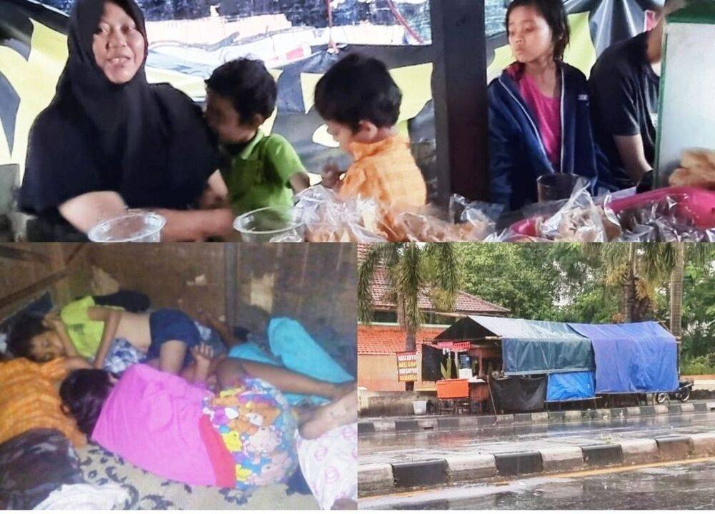 Sebelumnya mereka tinggal di sebuah kos, tetapi karena tak kuat membayar lagi, dia bersama suami dan 10 anaknya memilih tinggal dan tidur di kolong meja yang biasa sebagai tempat berjualan.