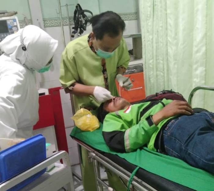 Beruntung, di belakang ada teman sesama ojol yang langsung membawanya ke RS PKU Muhammadiyah. Dia pun mendapat perawatan empat jahitan hidung bagian dalam dan empat jahitan bagian luar.