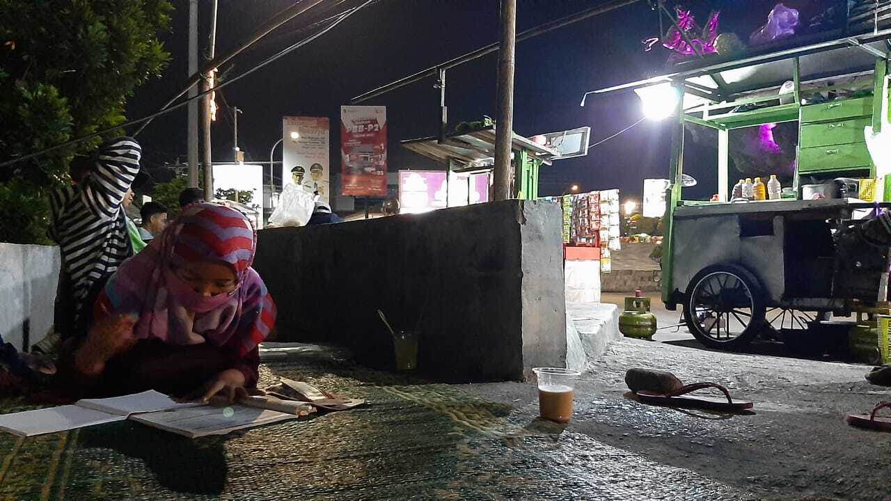 Dia biasa belajar sambil menemani ibunya, Sri Waltini (49) berjualan bakso dan mi ayam di Simpang Siaga Boyolali Kota seperti terlihat pada Senin (20/9/2021) malam.