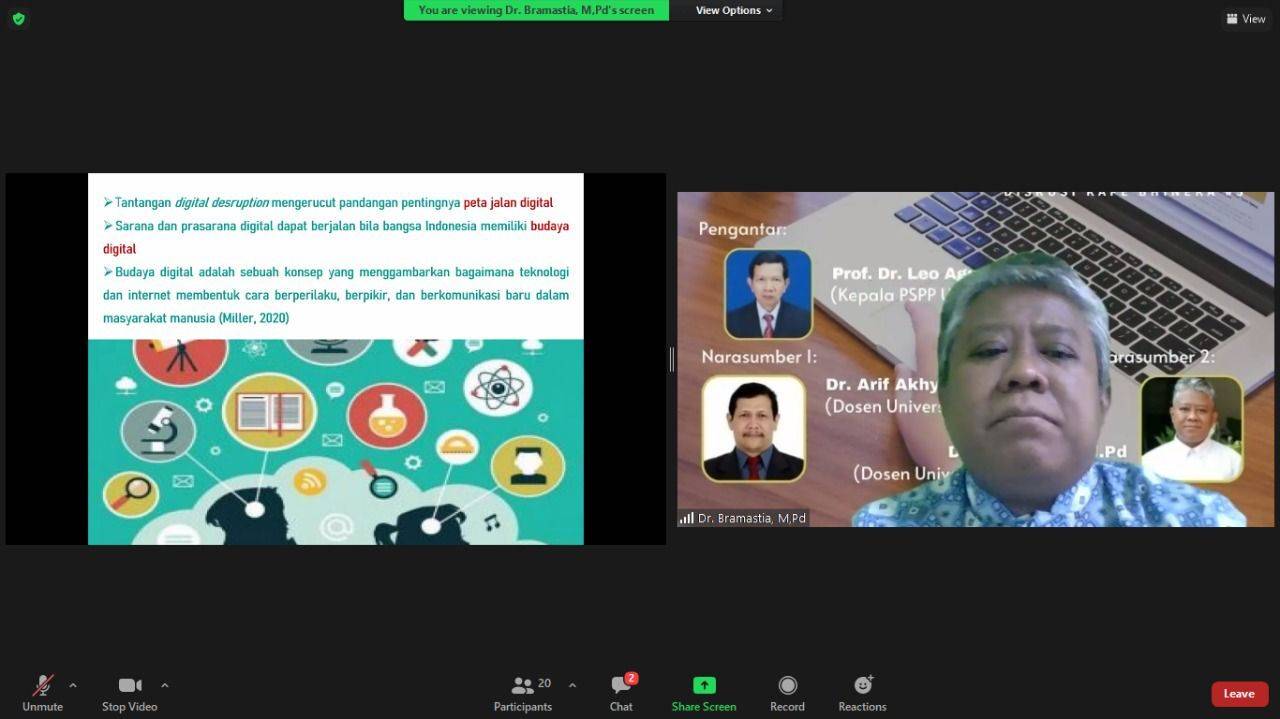 Sementara Dr. Bramastia, M.Pd memaparkan materi mengenai penguatan literasi digital berideologi Pancasila.