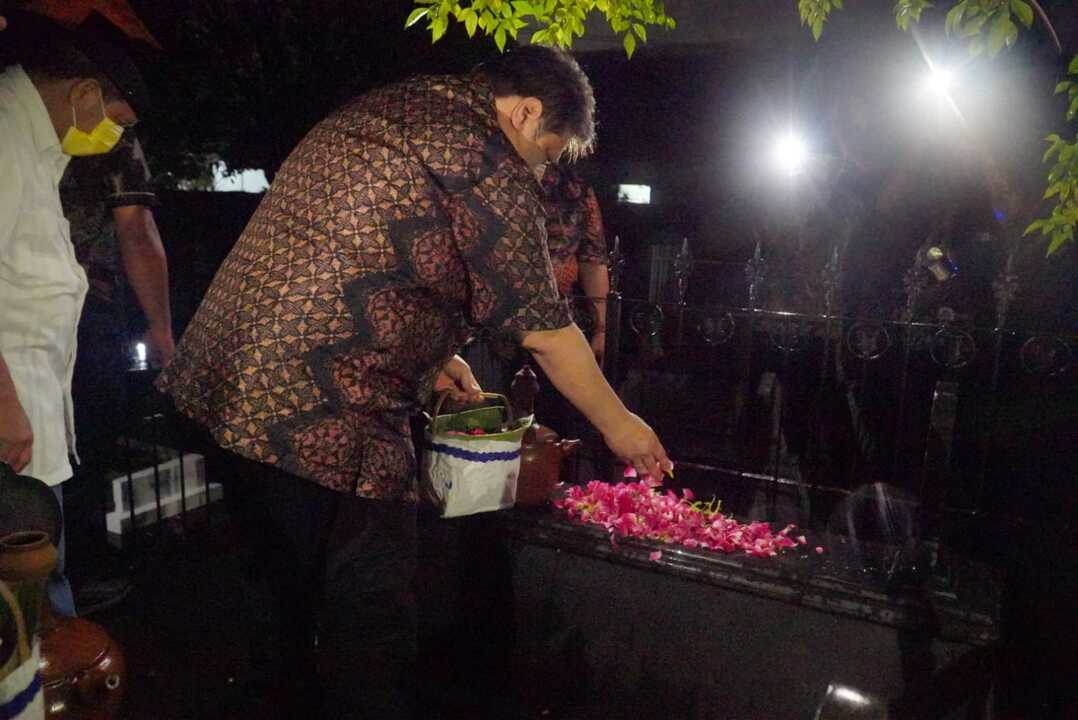SOLO, JOGLOSEMARNEWS.COM — Menjelang memasuki bulan Ramadhan, Menteri Koordinator Bidang Perekonomian, Airlangga Hartarto menyempatkan diri ziarah ke makam keluarga besarnya di Pasarean Nayu, Astana Oetara, Mangkunegaran, Solo, Kamis (24/3/2022).