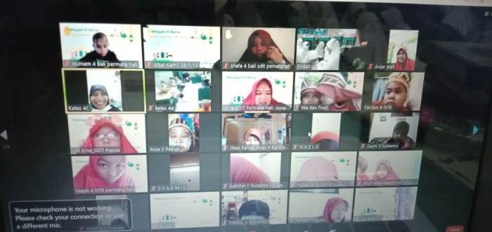 Lantaran itulah, siswa kelas IV SD Islam Terpadu (SDIT) Nur Hidayah Solo dan SDIT Permata Hati Papua berkolaborasi dalam kegiatan Camping Al Qur’an secara virtual.