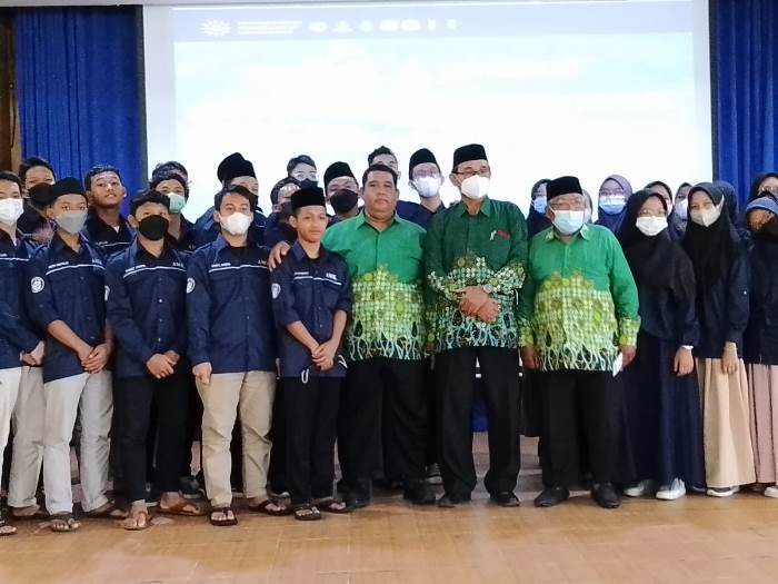 Secara simbolis, kepada 54 siswa itu diserahkan peci dan sarung serta mukena kepada perwakilan peserta sebagai tanda dimulainya kegiatan.