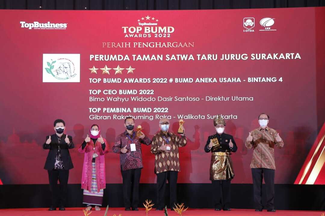 SOLO, JOGLOSEMARNEWS.COM —Perusahaan Umum Daerah Taman Satwa Taru Jurug (Perumda TSTJ) di bawah kepemimpinan Bimo Wahyu Widodo selaku Direktur Utama dan Gibran Rakabuming Raka selaku Pembina BUMD berhasil memperoleh penghargaan TOP BUMD yang diselenggarakan oleh majalah TopBusiness.