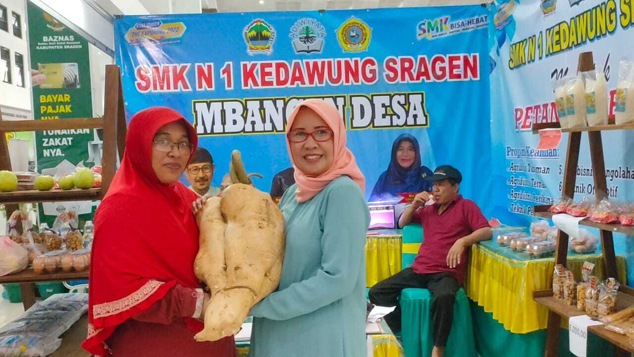 Bengkoang yang diyakini menjadi bengkoang terbesar di Indonesia itu dipamerkan oleh SMKN 1 Kedawung Sragen.