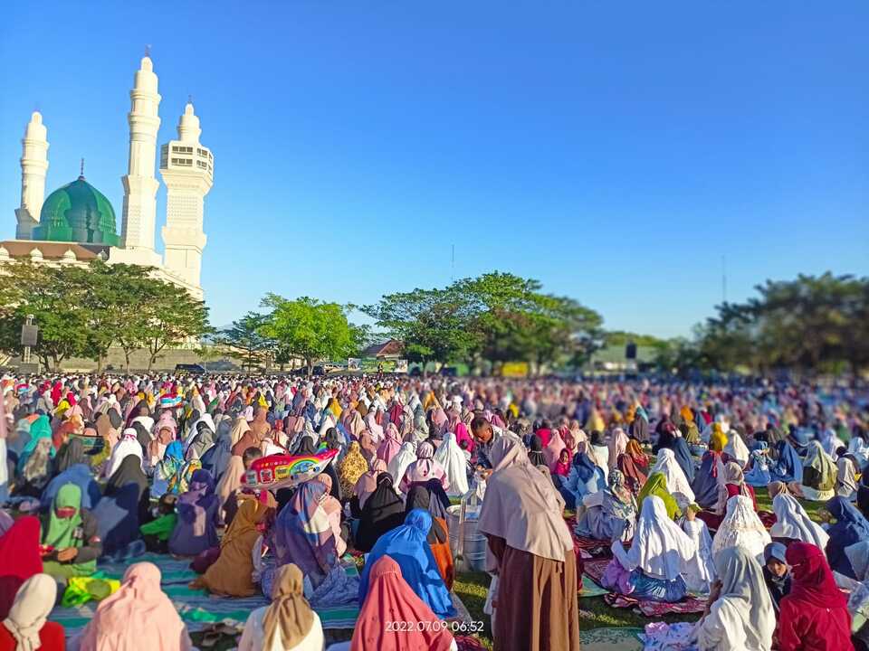 KARANGANYAR, JOGLOSEMARNEWS.COM -Pelaksanakan sholat Iedul Adha di Alun-alun Kabupaten Karanganyar pada Sabtu (9/7/2022) dipadati ribuan warga. Bahkan karena banyaknya jamaah hingga meluber dijalan aspal sekitar Alun-alun.