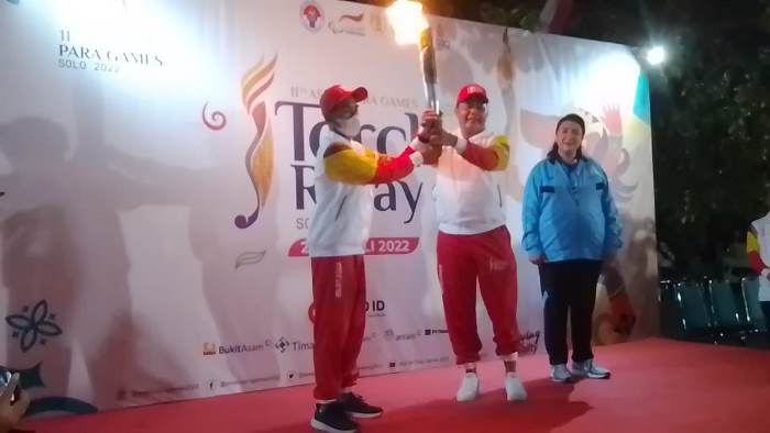 Pawaiestafet itu diawali dari penyambutan kedatangan obor api Asen Para Games dari Pemkab Sukoharjo lalu diserahkan kepada Pemkab Karanganyar di Masjid Agung Madaniyah sekira pukul 19.15 WIB.