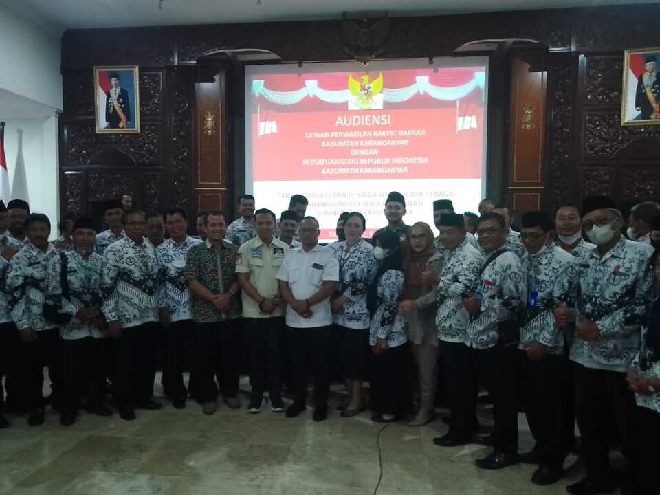 Tuntutan itu disampaikan oleh sebanyak 50 orang pengurus PGRI Karanganyar yang diketuai Sri Wiyanto melalui audiensi dengan pimpinan DPRD Karanganyar, Selasa (5/7/2022).