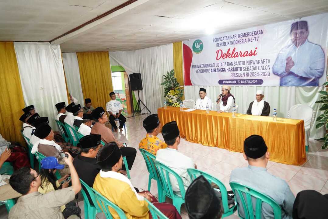 “Sebenarnya untuk pribadi saya, Beliau (Airlangga Hartarto) adalah sosok yang tidak banyak omong, tapi banyak kerja,” tutur Kiai Aos saat deklarasi dukungan Airlangga Capres 2024 bersama Forum Komunikasi Ustadz dan Santri (Fokus) Kabupaten Purwakarta, Sabtu (27/8/2022).