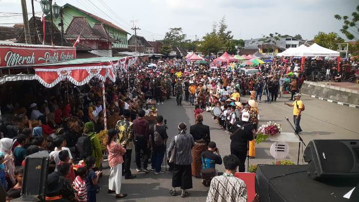 “Ada panggung hiburan, mulai dari panggung dangdut, wayang, band, Koes Plusan, campur sari, reog, tarian topeng ireng, Laras Madyo, mocopatan, kirab prajurit Keraton, kirab petani beserta hasil bumi dan berbagai seni lainnya,” terang Gombloh yang sering disebut Budayawan Pengging.