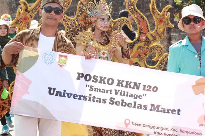 “Kami mahasiswa KKN UNS Kelompok 120 turut memeriahkan dengan mengeluarkan satu penampilan kostum batik yang spektakuler dengan didampingi teman teman lain yang menggunakan baju adat lurik,” ujar Ketua KKN Kelompok 120, Riyan.