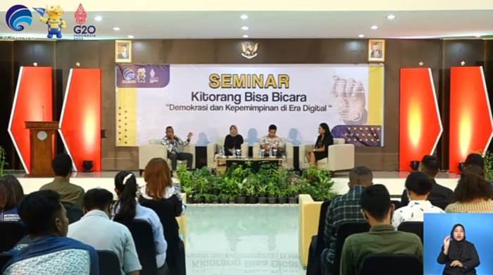 Untuk diketahui, seminar Demokrasi dan Kepemimpinan di Era Digital itu menghadirkan tiga narasumber, yakni pertama, Staf Khusus Presiden Bidang Pendidikan, Inovasi dan Daerah Terluar, Gracia Josaphat Jobel Mambrasar atau lebih akrab sebagai Billy Mambrasar.