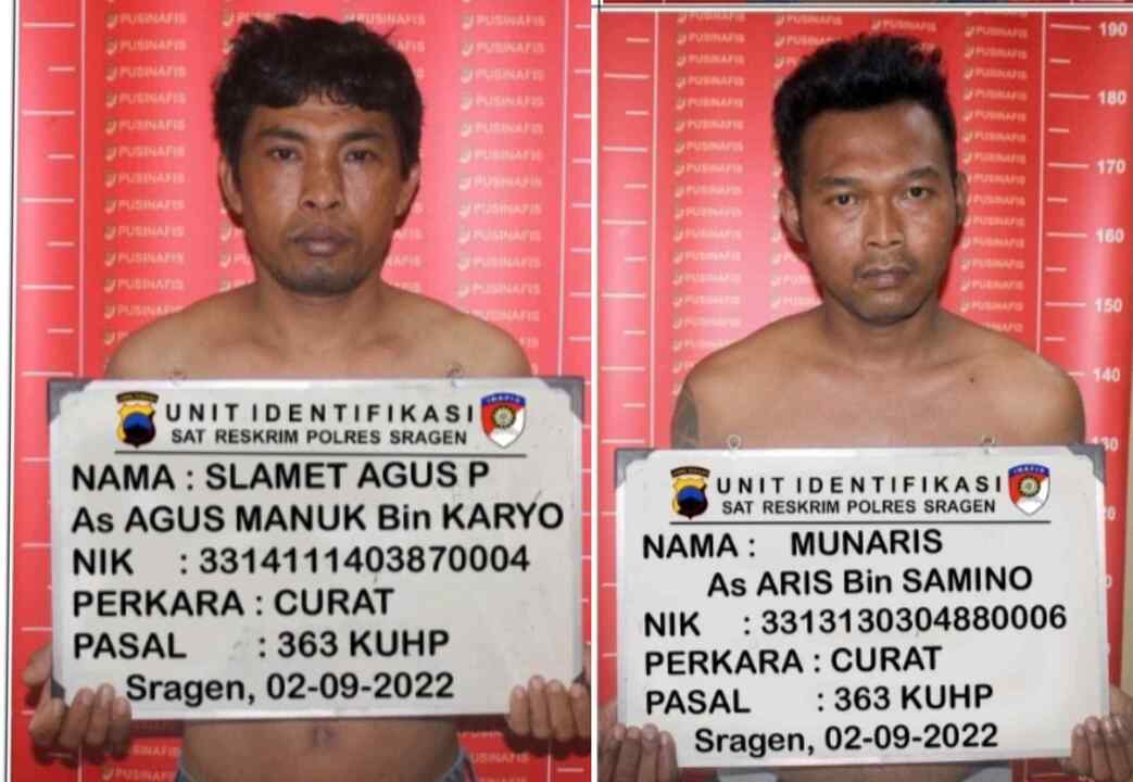 Keduanya berkomplot membobol rumah Guntur Setyo Eko Nugroho alias Madu (32) warga Dukuh Pohireng RT 10/08, Desa Guworejo, Kecamatan Karangmalang, Sragen.