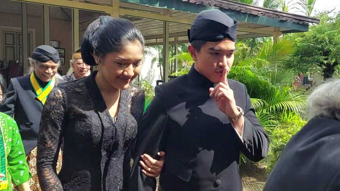 Kaesang memakai beskap warna hitam dan jarik warna cokelat. Begitu pula Erina mengenakan kebaya warna senada dengan Kaesang warna hitam juga jarik warna cokelat serta tengah memakai sanggul.