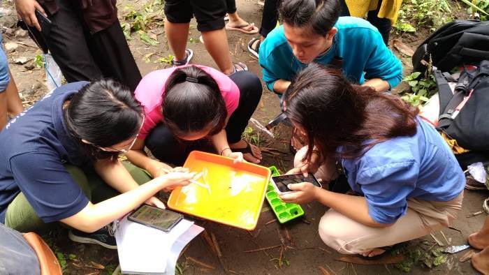 “Ini baru pertama kali saya turun ke sungai mengambil dan mengamati biota kecil-kecil di sungai. Asyik juga bisa mengetahui detail biota air,” terang mahasiswa asal Sumba Barat tersebut.