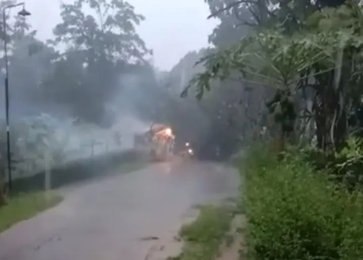 Akibatnya pohon sengon tersebut menimpa tiang listrik hingga menyebabkan kabel konslet dan terbakar.