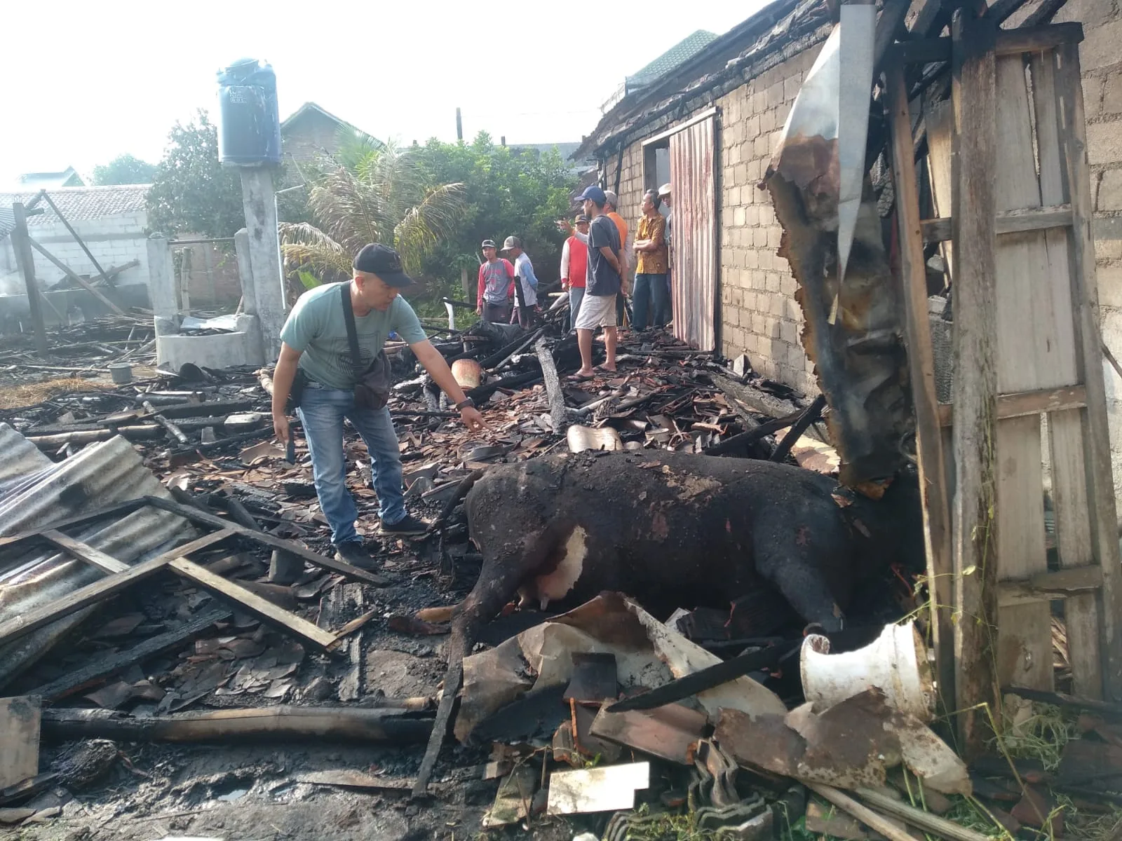 Akibat kebakaran tersebut, rumah beserta kandang sapi ikut hangus dilalap api.