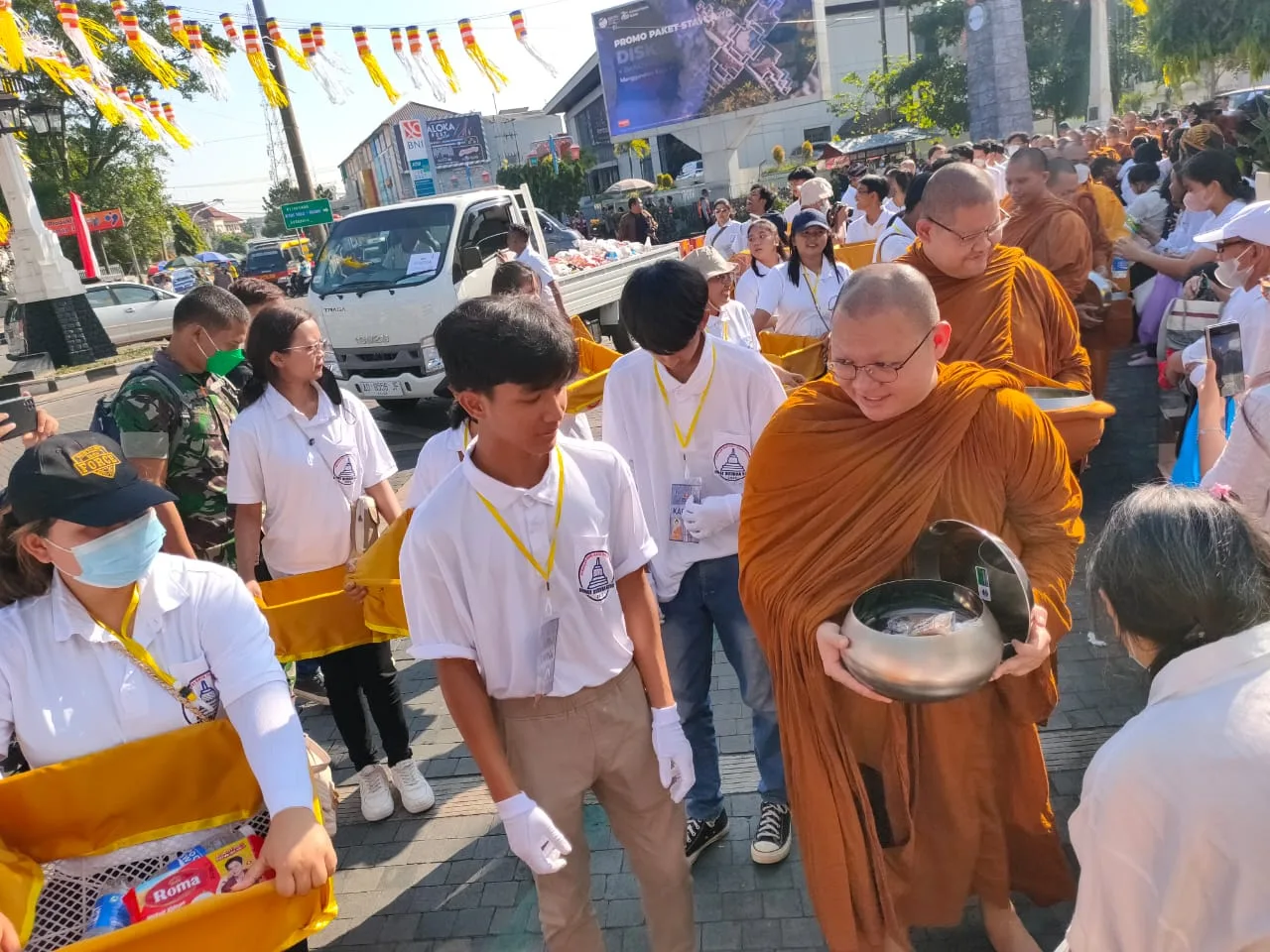 SOLO, JOGLOSEMARNEWS.COM – Perayaan Trisuci Waisak 2567 TB /2023 di Solo dilakukan dengan menggelar Tradisi Pindapata pertama kalinya, Sabtu (10/6/2023).