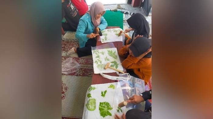 Dongkrak Semangat Wirausaha Muda, KKN 20 FKIP UNS Ajari Warga Sumber, Solo Buat Ecoprint Pounding