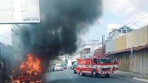 Untung saja, si pengendara mobil langsung keluar sehingga tidak terjadi korban jiwa dalam kebakaran tersebut.