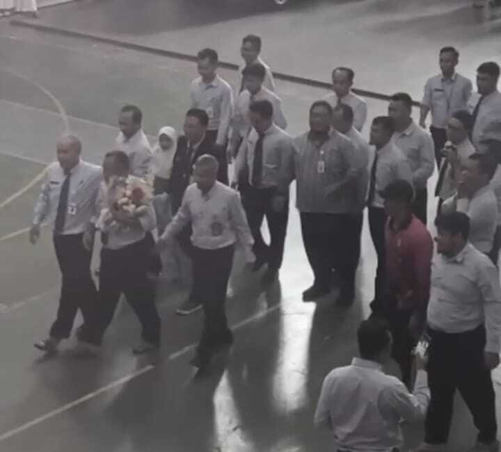 Tak pelak, karena acara itu spontanitas maka Soedarso pun terkaget saat dihampiri Kasek SMA Muhi Soemarwanto M.Pd bersama puluhan guru lainnya dengan tetap terdengar koor lagu Hymne Guru oleh ratusan muridnya.
