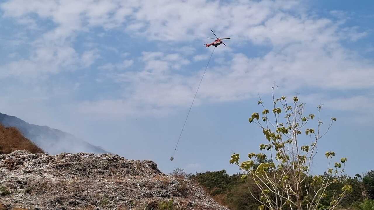 SOLO, JOGLOSEMARNEWS.COM – Heli superpuma diterjunkan untuk memadamkan api yang membakar Blok B TPA Putri Cempo di sisi timur dan utara, pasca kebakaran yang terjadi sejak Sabtu (16/9/2023) siang lalu.