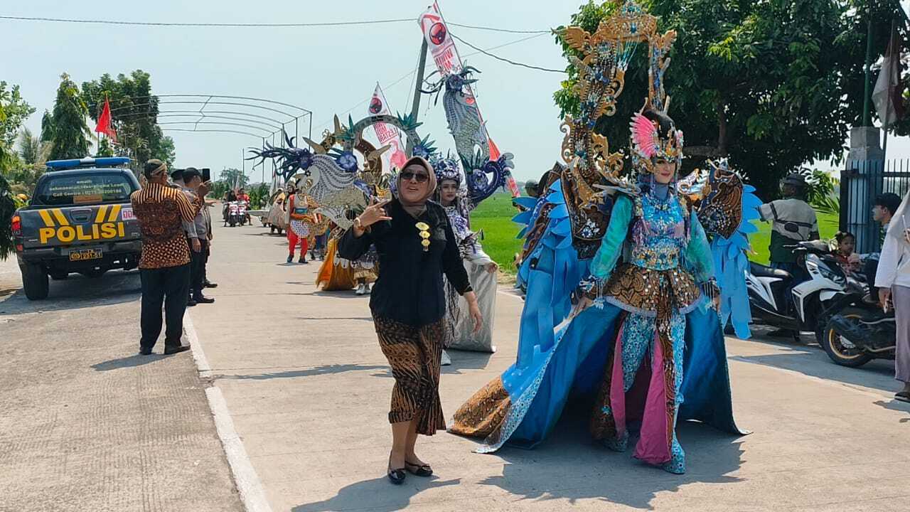 SRAGEN, JOGLOSEMARNEWS.COM – Dalam rangka hari batik nasional jatuh pada tanggal 2 Oktober setiap tahunnya, ratusan masyarakat Desa Kliwonan, Kecamatan Masaran, Kabupaten Sragen, Provinsi Jawa Tengah ramai-ramai mengikuti acara karnaval peringatan hari batik nasional 2023 dengan arak-arakan keliling kampung dengan membawa batik berbagai motif dan berbagai model kostum yang berbahan dasar batik, Minggu (1/10/2023).
