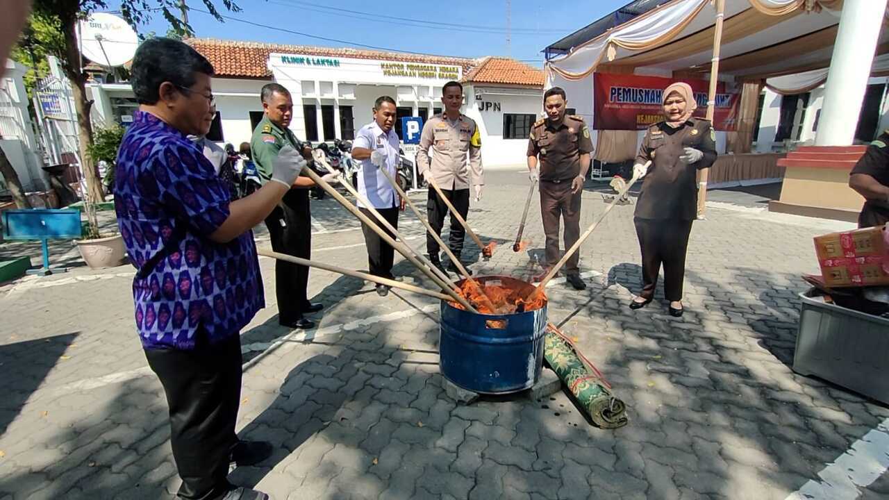 SRAGEN, JOGLOSEMARNEWS.COM – Kejaksaan Negeri Sragen kembali memusnahkan barang bukti tindak pidana umum dan pidana khusus periode bulan Juli sampai November 2023 sebanyak 41 perkara, Selasa (19/12/2023) pagi.