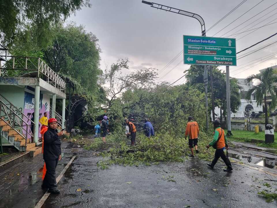 Pasca kejadian petugas gabungan dari dinas lingkungan hidup, BPBD Kota Solo, dan juga relawan berusaha untuk memindahkan pohon tersebut yang tengah menutupi jalan dengan menggergaji dahan-dahannya.