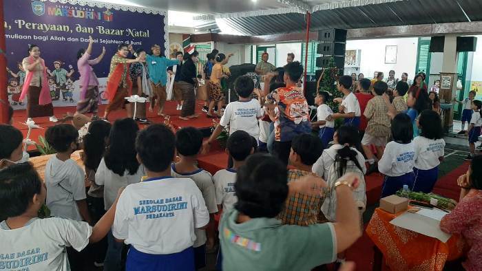 SOLO, JOGLOSEMARNEWS.COM – Pentas dan Bazar Natal 2023 yang diselenggarakan SD Marsudirini Surakarta selama dua hari, Jumat (12/1/2024) dan Sabtu (13/1/2024) berlangsung hidup dan meriah.
