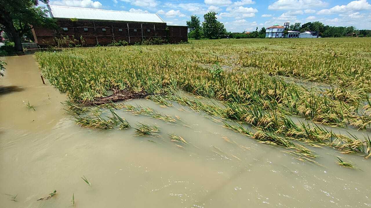 Sementara untuk sektor pertanian terdampak hujan deras paling parah yakni Desa Tangkil, Kecamatan Sragen Kota, Sragen, puluhan hektare sawah Padi siap panen terendam.