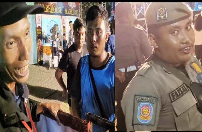 Salah satu petugas Satpol PP Sragen penjaga pintu masuk panggung juga sempat tertangkap kamera, bernama “Faisal”, sedangkan salah satu oknum panitia acara tidak diketahui namanya memilih diam tak mau menjawab pertanyaan wartawan.