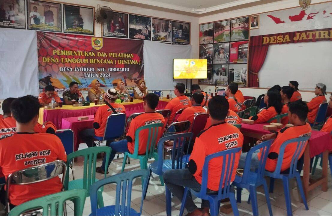 Babinsa Koramil Girimarto Kodim 0728 Wonogiri Serka Joko Suyitno menghadiri pembentukan dan pelatihan desa tangguh bencana alias Destana di balai Desa Jatirejo Girimarto Wonogiri, Selasa (14/5/2024).