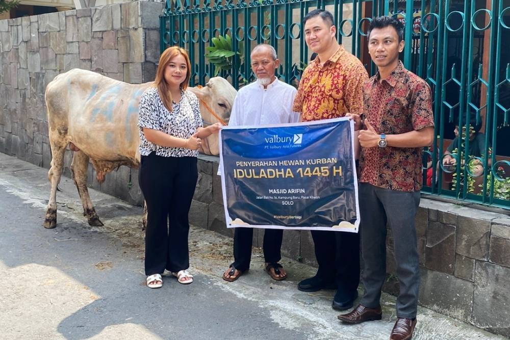 JAKARTA, JOGLOSEMARNEWS.COM – PT Valbury Asia Futures menebar hewan kurban Idul Adha 1445 H di 3 kota besar di Indonesia, melalui kantor cabang Valbury yang berada di Makassar, Solo & Semarang.