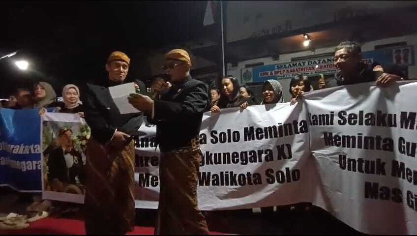 Dalam deklarasi tersebut, mereka membacakan bersama-smaa petisi permintaan agar Mangkunagoro X atau akrab disapa Gusti Bhre maju menjadi Cawali Solo. Para peserta deklarasi terlihat kompak mengenakan pakaian hitam dan membentangkan spanduk bertuliskan permintaan agar MN X mau meneruskan kepemimpinan Gibran Rakabuming Raka sebagai Wali Kota Solo.