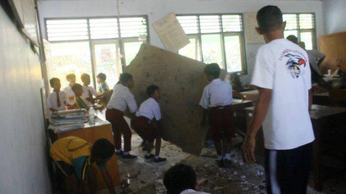 “Kami segera membersihkan sisa-sisa runtuhan plafon agar tidak mengganggu aktivitas sekolah,” ujar Agus.