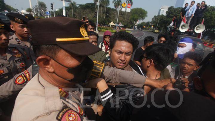 “Tadi kami masuknya mau lewat Patung Kuda. Tapi memang sudah ditutup jalannya sama kepolisian. Kami enggak bisa masuk (kawasan Istana Negara),” ucap Piere.