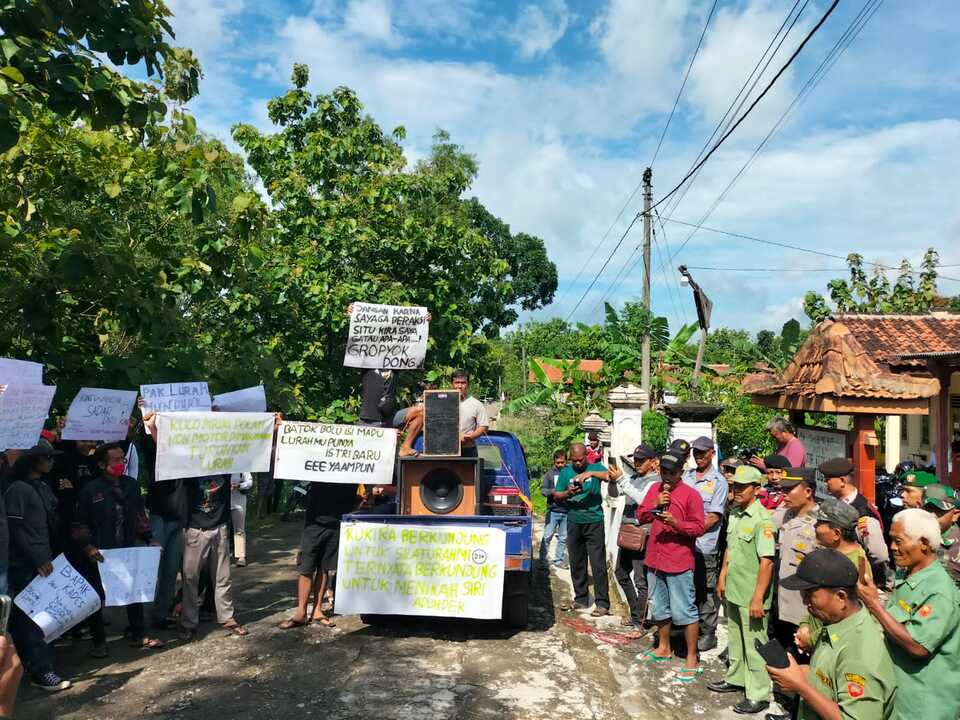 Mereka menuntut agar Kades Sriyanto, segera mundur atau dicopot dari jabatannya selaku kades.