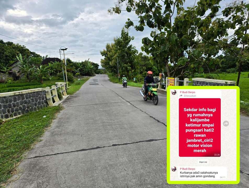 Menurut penelusuran JOGLOSOMARNEWS.COM aksi jambret dan begal pakai motor Vixion sudah terjadi di dua lokasi berbeda yaitu wilayah kecamatan Kalijambe dan Tanon, diduga pelaku satu orang yang sama.