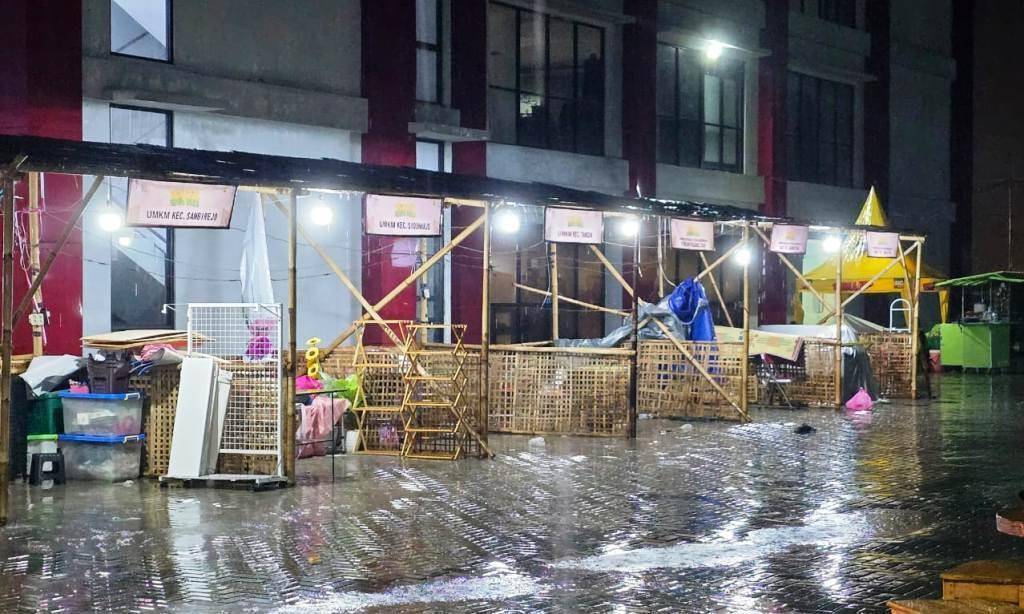Tak hanya merusak barang dagangan, hujan juga menyebabkan genangan air yang mengganggu lalu lintas pengunjung. Beberapa kios terpaksa tutup, dan pentas hiburan yang menjadi daya tarik utama acara pun terpaksa ditunda.