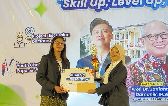 SOLO, JOGLOSEMARNEWS.COM – Prestasi membanggakan kembali ditorehkan mahasiswa Program Studi Desain Komunikasi Visual (DKV) FSRD ISI Surakarta. Nur Aula Octavia berhasil meraih Juara III kategori Best Solution Paper dalam ajang Youth Paper Challenge pada Konferensi Pemuda Nasional 2026 yang digelar di Universitas Gadjah Mada, 15 Februari 2026.