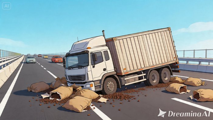 Ilustrasi truk mengalami kecelakaan tunggal | kreasi AI