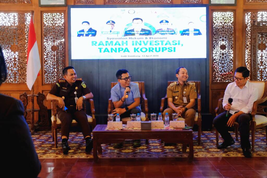 Dalam Diskusi publik bertema Syawalan Hukum dan Ekonomi : Ramah Investasi, Tanpa Korupsi’ di Pendopo Lodji Gandrung, Senin (13/4/2026) Prof Puji menegaskan hukum tidak boleh dipahami sebatas kumpulan pasal atau alat penghukuman.
