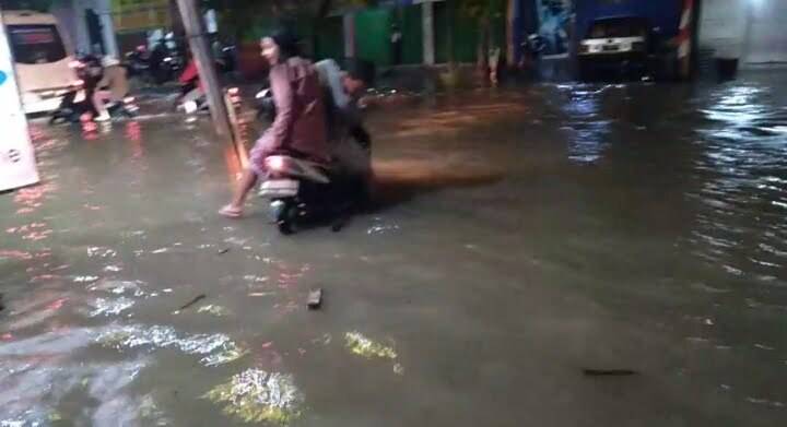 Diguyur Hujan Deras, Jalan Slamet Riyadi dan Barat Alun-alun Sukoharjo Kebanjiran
